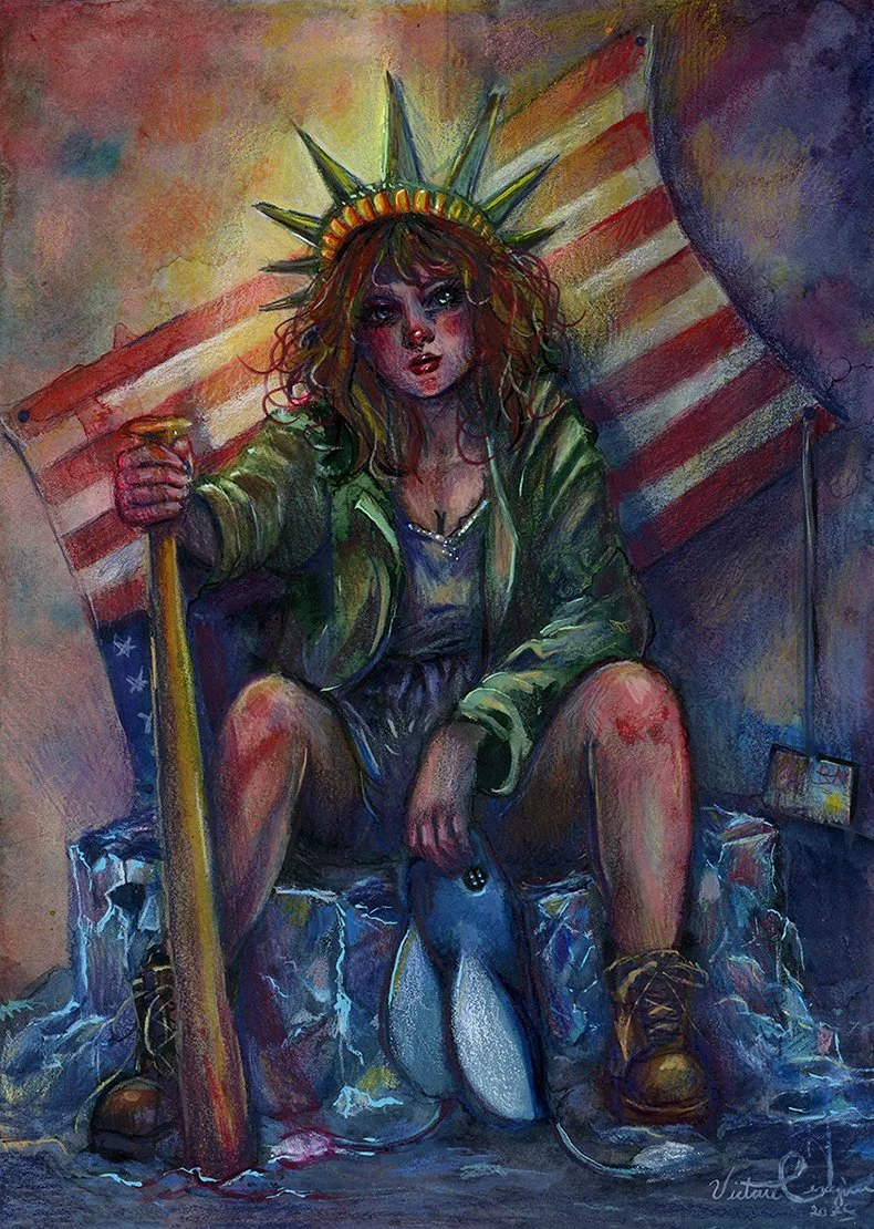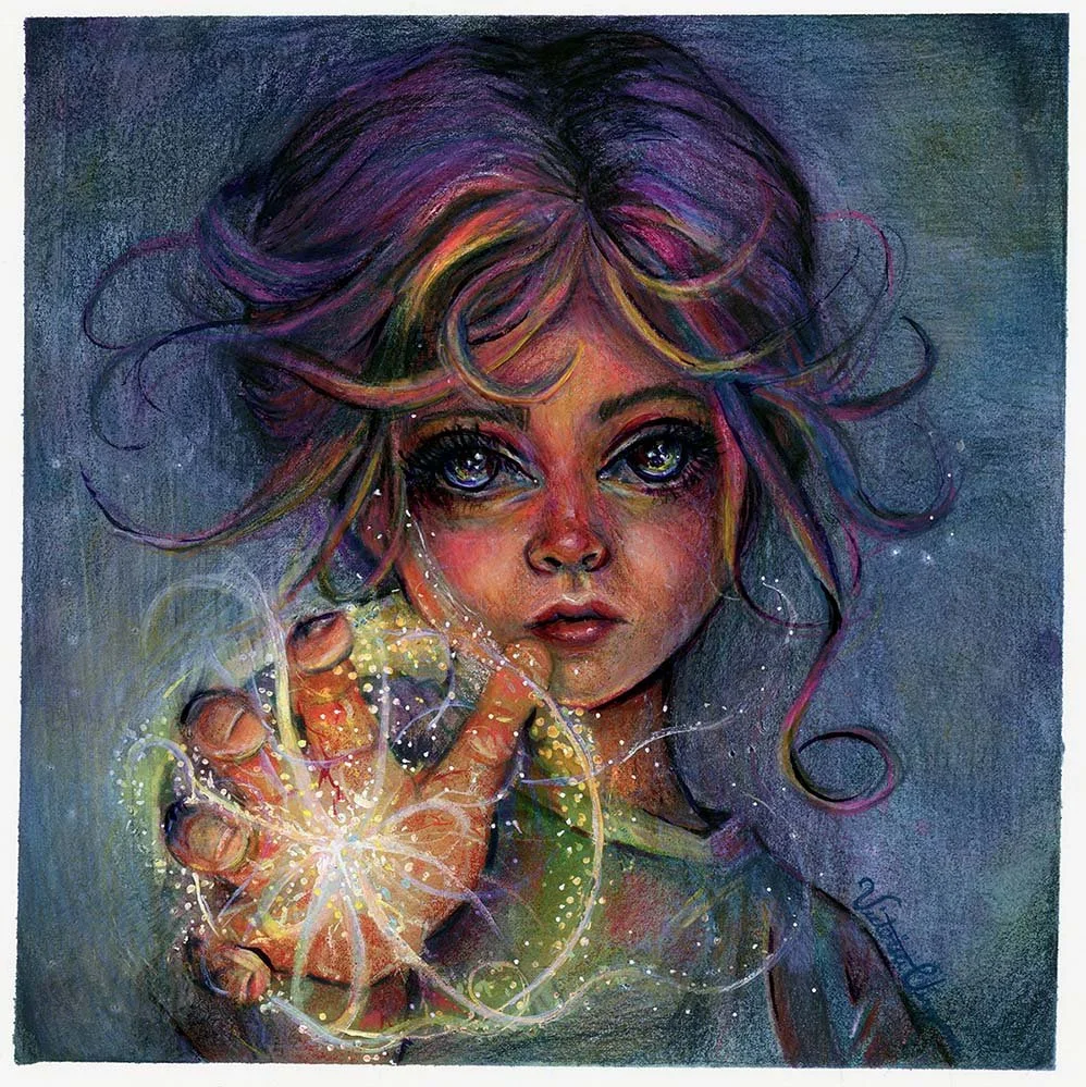 Victoria is a Contemporary Pop-Surrealist artist specializing in beautiful fantasy portraits and landscapes. These paintings transport you to a dream-like and surreal world where she shows a reflection of her inner self. She is influenced by the world around her, (including/mainly) her wife and children, dolls, fantasy games, and